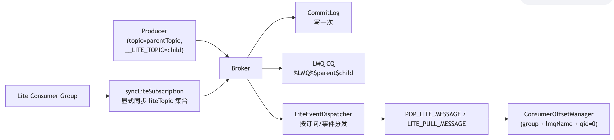 LiteTopic 更像:RocketMQ 自己内部长出的一种轻量子主题消息模型。
